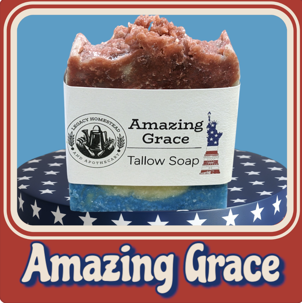 The Amazing Grace Soap contains the Main Base Ingredients, Fragrance Oil and Mica powder.